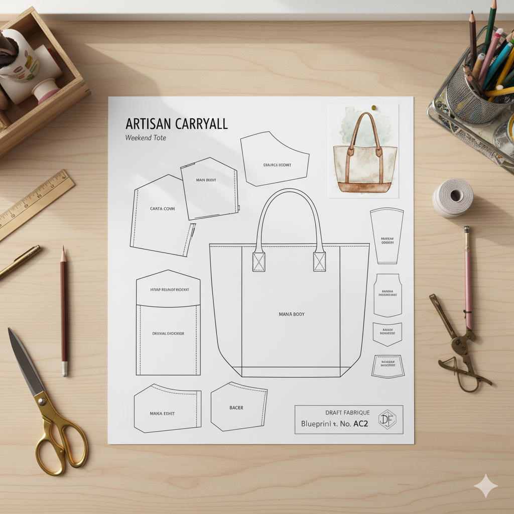 This Blueprint provides the high-precision pattern for crafting a spacious and stylish tote bag, perfect for everyday use or weekend getaways. The design is engineered for durability and features clean lines that highlight your fabric choice. Download this pattern today and discover the joy of creating a functional accessory that reflects your unique style.